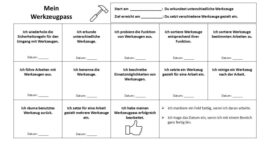 Im Inhaltsbereich der „Arbeitsrelevanten Schlüsselkompetenzen“ wird in Anlehnung an den Kriterienkatalog zur Ausbildungsreife der Bundesagentur für Arbeit der systematische Aufbau von Kompetenzen in relevanten, überfachlichen Merkmalsbereichen fokussiert.