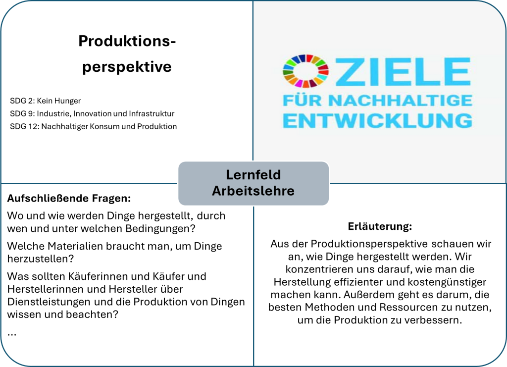 Durch die fachwissenschaftliche Anbindung des Lernfelds Arbeitslehre an die fachlichen Perspektiven von z. B. Wirtschaft, Technik, Haushalt und Soziales und die damit verbundene Auseinandersetzung der Lernenden mit technischen, ökonomischen, ökologischen, hauswirtschaftlichen, sozialen, kulturellen, ästhetischen und politischen Zusammenhängen der Arbeitswelt trägt die Arbeitslehre zur Persönlichkeitsbildung bei und eröffnet vielschichtige Perspektiven auf die Bereiche Finanzen, Marktgeschehen, Verbraucherrecht, Ernährung und Gesundheit, Freizeit, Medien und Information sowie Konsum.